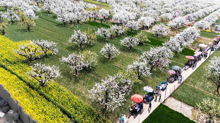 百年梨园绽放长卷,镜头定格中原春景